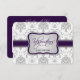 Eleganter grauer Damaske und Lila Geschenkzertifikat Eggplant. Fügen Sie Ihr eigenes Logo und Ihre persönlichen Daten hinzu. Geeignete Designanfrage angenommen. Kontaktieren Sie mich für weitere Informationen.