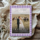 Elegante Rustikale Lila Gingham Wappen Monogram 2 Foto "Danke" Karte. Mit dieser bezaubernden Gingham-Hochzeit bedanken Sie sich stilvoll und mit einer Dankeschön-Karte. Die Vorderseite mit einer klassischen lila Gingham-Grenze und elegantem Monogramm-Wappen präsentiert Ihr Lieblings-Hochzeitsfest mit einer zeitlosen "Danke"-Nachricht. Im Hintergrund gibt es ein zweites Foto und eine personalisierte Note, mit der Sie Ihre herzliche Wertschätzung mit der Familie und Freunden teilen können. Diese Karte ist perfekt für rustikale, ländliche oder elegante Hochzeiten geeignet und vereint Wärme und Eleganz. Erhältlich in 6 Gingham-Farben, kann es über die gesamte Hochzeitssuite abgestimmt oder gemischt werden, um einen farbenfrohen und fröhlichen Look zu erhalten. Ein bedeutender Sake für Ihre Gäste wird Schatz.