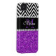 LILA GLITZER BLACK ZICKZACK MIT MONOGRAMM Case-Mate iPhone HÜLLE