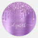 Personalisierte, elegante und gürtelige Aufkleber mit lila Imitaten Glitzer tropfen in einem lila Imitat metallische Hintergrund. Personalisieren Sie mit Ihrem Namen in einem hübschen weißen Skript mit Swashes.