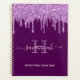 Stilvoll gürtelig und feminin dunkelfarbener lila Hintergrund mit lila Imitaten Glitzer Tropfen, Tropfen, Tropfen. Personalisieren und fügen Sie Ihren Namen, Mono-Buchstaben und einen Titel. Ein Planer für die Organisation von Geschäftskunden, Terminen, Listen zu machen, oder Ihr tägliches Leben. Der Name wird mit einem großen angesagten, handgeschriebenen Skript mit Swashes geschrieben. Um die Swashes behalten, löschen Sie nur den Beispielnamen, verlass die Leerzeichen oder Emoji's vor und nach dem Namen. Hell rosa und lila Buchstaben.