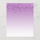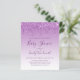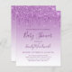 Diese trendige, virtuelle Babydusche bietet einen Rahmen aus funkelnd tropfenden lila Imitate Glitzer auf einem lila Hintergrund. Die Wörter "Baby Shower" und der Name der Mutter-zu-be erscheinen in lila Handschrift, der Rest in Sans Serif Schriftart.
