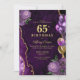 Elegantes lila Gold Floral Agate 65. Geburtstag Party Einladung. Zum 65. Geburtstag laden lila und goldene Glitzer-Ballons und zarte lila Lila-Rose-Flora mit goldenen Fesseln ein.