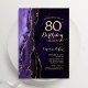 Lila und goldene Altersgruppe 80. Geburtstagsfeier Einladung. Elegantes modernes Design mit Aquarellfarben-marmorgeode Hintergrund, Imitate Glitzer Gold und Typografie Skript-Schriftart. Die trendige Einladungskarte eignet sich perfekt für eine stilvolle Damenfeier. Gedruckte Zazzle Einladungen oder Sofortdownload digitalen druckbaren Vorlage.