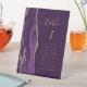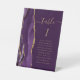 Der links Rand dieses eleganten modernen Hochzeitssockels mit Tischnummer besticht durch eine lila Aquarellgrenze, die mit Imitaten mit goldenem Glitzer bestickt wurde. Das Wort "Tabelle" erscheint in einem goldfarbenen Schriftsatz auf einem reichen Pflaumenhintergrund. Fügen Sie die Namen Ihrer Gäste hinzu, die jeder Tabelle zugeordnet sind.