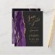 Der links Rand dieser eleganten modernen Hochzeit bewahrt die Dattelkarte mit einem lila Aquarellstreifen, der mit Imitaten mit goldenem Glitzer bestickt ist. Der anpassbare Text kombiniert goldfarbenes Skript und singt serifenlose Schriftart auf schwarzem Hintergrund. Auf der Rückseite ist ein lila und goldenes Design zu sehen.