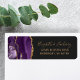 Die links Kulisse dieses eleganten, modernen Hochzeitseinladungs-Rücksendelabel besticht durch eine lila Aquarellgrenze mit vergoldetem Imitat-Glitzer. Der anpassbare Text kombiniert goldfarbene Handschriften und Copperplate-Schriftart auf schwarzem Hintergrund.