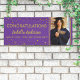 Ein festliches Graduiertenbanner mit goldenem Konfetti auf Lila Hintergrund. Personalisieren Sie Ihre Ausbildung mit dem Namen, Foto, Schule/Uni und Jahr.
