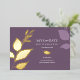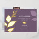 Einzigartige botanische Hochzeit speichert die Datumseinladung und umrahmt Ihre Ankündigungsdetails mit einem Rahmen von eleganten Goldfolien-Herbstlauben. Ihr rett unsere Datumdetails sind Set in einem stilvollen, traditionellen Serifentyp auf einem soliden lila Hintergrund. Die Karte kehrt zum Foto Ihrer Verlobung zurück. Ideal für Herbst-, Rustikal- oder Gartenhochzeiten im September, Oktober und November. Weitere Designs wie diesen besuchen Do Tell A Belle on Zazzle unter www.zazzle.com/dotellabelle