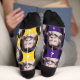 Diese niedlichen, zweifarbigen lila und goldenen Socken zeigen ein Foto eines Freundes für seine Freundin in einem trendigen Offsetmuster auf lila und goldenem Hintergrund mit weißen Dreiecken. Diese lustigen Socken sind eine tolle Möglichkeit für Ihre Freundin (oder Ehefrau), sich nicht nur an Sie zu erinnern, während sie sie anzieht, sondern auch ihre Schulfarben zu feiern! Dies ist ein tolles Geburtstag- oder Weihnachtsgeschenk und Ihre Freundin oder Ehefrau wird sie Liebe (fast so viel, wie er Sie Lieben!) Perfekte kleine Geschenke!