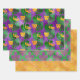 LILA GOLD MARDI GRAS MASKS FEATHERS GESCHENKPAPIER SET