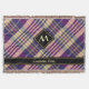 Lila, goldgelbes und blaues Tartan-Design. Nahtloses Muster. Benutzerdefinierter Text und Monogramm.