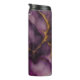 Dieses Bild ist ein abstraktes Kunstwerk mit fließenden Mustern von tiefem lila und magenta mit weißen Untertönen, die an Alkoholfarbe oder Aquarellfarbe erinnern. In den intensiven Farben verwoben sind faszinierende Venen und eine Mischung aus metallischem Gold, die einen luxuriösen und eleganten marmorähnlichen Effekt erzeugen. Der Gesamteindruck ist fließend und Bio, mit einer raffinierten Farbpalette.