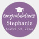 Lila Graduation Cap Gratulation für moderne Skript Runder Aufkleber