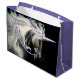 Ein Profil eines weißen Einhorns mit lila Farbe in der Mane im Hintergrund schwarz