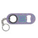 Schlüsselanhänger Bottle Opener mit einem Thema aus Buntglas-Blume mit einem maßgeschneiderten Monogramm in lila und grünen Farben. Personalisiert der erste erste Start!