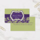 Dieser lila, weiße und grüne Damast Hochzeitsgunst-Tag passt zu der unten abgebildeten Hochzeitseinladung.