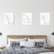 Fügen Sie mit diesen wunderschönen Kunstdrucken die Touchs in das Kinderzimmer oder Kinderzimmer Ihres Babys ein! Das Design umfasst lila Heißluftballon, Tiere (Hase, Bär, Elefant), Mond, Wolken und Sterne.