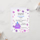 Ein großer lila Hippo mit einem Party, der für eine Geburtstagsparty vorbereitet ist, betont diese lustige Einladung. Eine Grenze von Würfeln und lustigen Designs fügt einen Spaß Anziehungskraft. Passen Sie Ihre Daten nach Wunsch mit Ihren Daten an.