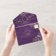 Feiern Sie Ihre Liebe mit einer exquisiten Mischung aus moderner Eleganz und Vintagem böhmischen Flair. Unsere Rose Gold und Stallholz lila All-in-One-Hochzeitseinladung bietet eine aufwändige vergoldete goldene Blumenspitze mit UAWG Details und einem personalisierten Link auf der Hochzeitswebsite. Ihr Monogramm zeichnet die Spitze aus und fügt eine Touch von maßgeschneidertem Charme hinzu. Jede Einladung wird auf der Rückseite von Hand adressiert, um eine wirklich persönliche Touch für Ihren besonderen Tag zu gewährleisten.