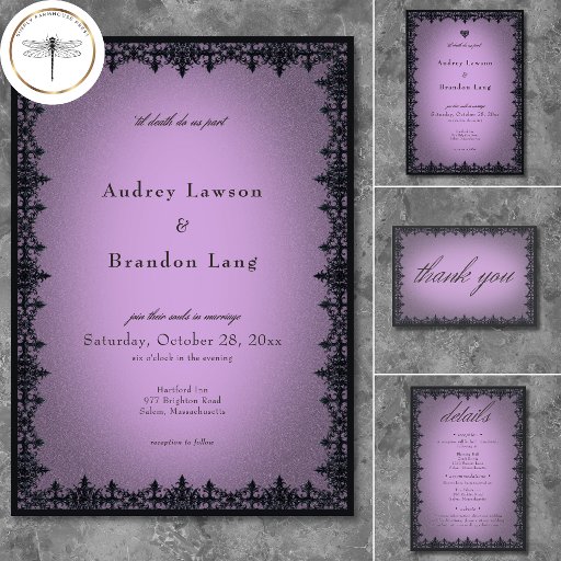 Lila Hochzeit mit viktorianischem gotischen Eisen Save The Date