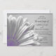 Personalisieren Sie die Lila Floral Highlights Hochzeit Einladung zu Ihrer Hochzeitsfeier und Empfang einladen. Dieses elegante und zeitgenössische Brautpaar bietet ein digital erweitertes botanisches Foto einer gerberblütigen Blume mit lila Highlights und einem silbergrauen Hintergrund.