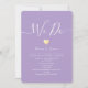 Ideal für Ihre intime Minimonie, verbindet diese Hochzeitseinladung moderne Eleganz mit einer zeitgenössischen weiß-pastellfarbenen lila Farbpalette. Das Design strahlt Ruhe und Eleganz aus, während ein zartes goldfarbenes Herz eine Touch von Wärme und Süße verleiht, die die anhaltende Liebe symbolisiert, die Sie mit Ihrem Partner teilen. Jedes Element dieser Einladung, das für eine personalisierte, herzliche Zeremonie konzipiert wurde, spricht von der Schönheit Ihrer einzigartigen Liebe, die den Ton für eine Feier absteckt, die so intim und bedeutungsvoll ist wie Ihre Beziehung.