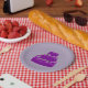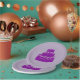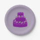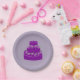 Eine hübsche lila dreistufige Hochzeitskuchen mit Blumenakzenten. Fügen Sie einen Namen oder die Worte, Brautparty oder Hochzeit, wenn Sie wünschen.