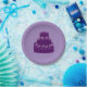 Eine hübsche lila dreistufige Hochzeitskuchen mit Blumenakzenten. Fügen Sie einen Namen oder die Worte, Brautparty oder Hochzeit, wenn Sie wünschen.