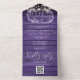 Lila Holzstring Lights QR Code Blumenhochzeit All In One Einladung