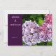 Schöne und lebendige lila Hydrangea schmücken diese zweiseitige Hochzeitseinladung. Passen Sie sich Ihren Wünschen an, indem Sie verschiedene Hintergrundfarben oder Schriftart auswählen. Ideal für eine Frühjahr- oder Sommerhochzeit oder ein tropisches/Inselziel. Sehen Sie sich unsere anderen Produkte in unserer Kollektion Wedding - Hydrangea an.