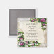 Hübsche lila Hydrangea-Blume mit Spitzen-Trimm. Diese schöne Rettung des Datums Magneten ist eine stilvolle, lang anhaltende Art, Ihren großen Tag zu verkünden. Personalisieren Sie den Magneten, indem Sie den Text in den angegebenen Feldern ändern. Sie können den Stil, die Größe und die Farbe des Schriftartes ändern.