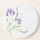 Lila Iris-Blume auf weißgetünchten Holzflächen.