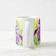 Moderne Blume von lila Iris mit gelbem Hintergrund auf Kaffeebeugen