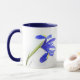 Eine Fotografie einer Blume der lila und gelben Iris gegen einen weißen Hintergrund.