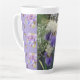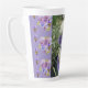 Lila Iris Iris blühende Latte Tasse. Ein prächtiges Blumendesign und ein Foto aus meinem Garten. Entworfen aus meinen ursprünglichen Aquarellbildern, die ich aus meinem eigenen Blumengarten gemalt habe.