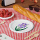 Meine ursprüngliche Wasserfarbmalerei druckte auf PapierTeller, (2 Größen, zum von zu wählen) und kennzeichnete eine lila Irisblüte und zwei knospeniris-Blumen.