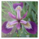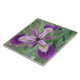 Diese phantastische Kachel zeigt ein Foto eines lila Iris. Das Foto wurde mit Makrofotografie für ein detailliertes Ergebnis erstellt. Diese schöne Blume blüht jedes Jahr in meinem Gartenteich und lässt mich immer lächeln.