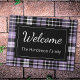 Lila Karierter Begrüßungsname Mit Monogramm Famili Fußmatte