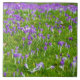Ein schönes Foto von einem Teppich aus lila Krokus, gedruckt auf einer Keramik Kachel.
