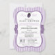 Es ist ein Mädchen! Elegante lila und schwarze Ladybug Babydusche laden auf Lavendel lila vertikale Streifen und schwarz-weiße Polka-Punkte-Muster mit Vintagem formalen Look ein. Ideal für Mädchen Ladybug, Dame Käfer, Thema Babyduschen; perfekt für Frühlingsduschen. Einladung zur runden Klammer.