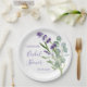 Brautparty Papierplatte. Dieses Design zeigt eine Aquarellillustrierung Lila Lavendel-Blume und Eukalyptus-Blattwerk. Personalisieren Sie mit Ihrem Namen und Datum.