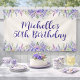 Feiern Sie 50 großartige Jahre mit diesem eleganten Blumen-Geburtstagsbanner mit sanften lila und violetten Wasserfarben-Blumen. Ein zeitloser, femininer Hintergrund, perfekt für Dessert-Tische, Foto-Bereiche und Geburtstags-Dekorationen zu besonderen Anlässen.