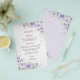 Personalisieren Sie diese billigen Blumenblätter einfach und schnell. Klicken Sie einfach auf die Schaltfläche "Weitere Einstellungen", um die Texte zu bearbeiten, Schriftart und Schriftart zu ändern. Mit hübschen pastellfarbenen Lavendelblumen, zarter Vegetation und Silberelementen. Dieses vielseitige Design ist ideal für viele Anlässe wie Hochzeit, Brautparty, Babydusche, Geburtstagsparty, Taufe, Quinceañera, Sweet 16, 18. Geburtstag und Debüttenball. Matching-Elemente im Speicher verfügbar. c) Somerset Fine Paperie