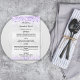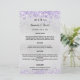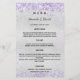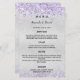 Eine elegante, glamouröse Hochzeitskarte. Personalisieren und fügen Sie Ihre Namen, Datum und das Hochzeitsmenü. Imitat silber aussehend, mit lila Lavendelkonfetti dekoriert.