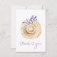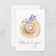 Dieses Design zeigt eine Aquarellbilder von Lavendelhut-Blume, die auf einem Strohhut liegen. Text "Dankeschön" ist in einem Skript-Schriftart mit gebündeltem Herzen geschrieben.