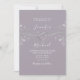 Elegante moderne Kalligraphie Drehbuch lila Lavendel Hochzeitseinladung mit Silberseilherz und vergoldeten Blumenspitzen.