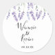 Lila, Lavender Wedding Sticker. Entworfen mit lila handbemalten Lavendel-Blume mit Aquarellstilisierung. Das ist ein Landhausstil für Hochzeiten im Frühling, Sommer und im Freien. Passen Sie dieses Design mit Ihrem Hochzeitsdatum und den Namen von Braut und Bräutigam an. Die Hintergrundfarbe ist Set zu Weiß, Sie können jedoch eine Füllfarbe Ihrer Wahl wählen.