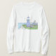 Lila Leuchtturm, original Handgezeichnetes Frauenhemd mit Beach Life auf der Rückseite