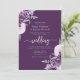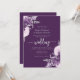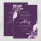 Diese elegante Hochzeitseinladung besticht durch lila und lila Blumenbouquets mit Set aus silberfarbenem Imitat, in zwei Ecken auf lila Hintergrund. Der anpassbare Text kombiniert silbergraue Serif-, kursiv- und handgeschriebene Schriftart. Die Rückseite bietet Platz für Hochzeitsdetails auf einem soliden lila Hintergrund, zusammen mit einem QR-Code, den die Gäste scannen können, um Ihre Website und UAWG zu besuchen, was die Kosten für den Druck und Versand separater RSVP-Karten rette.